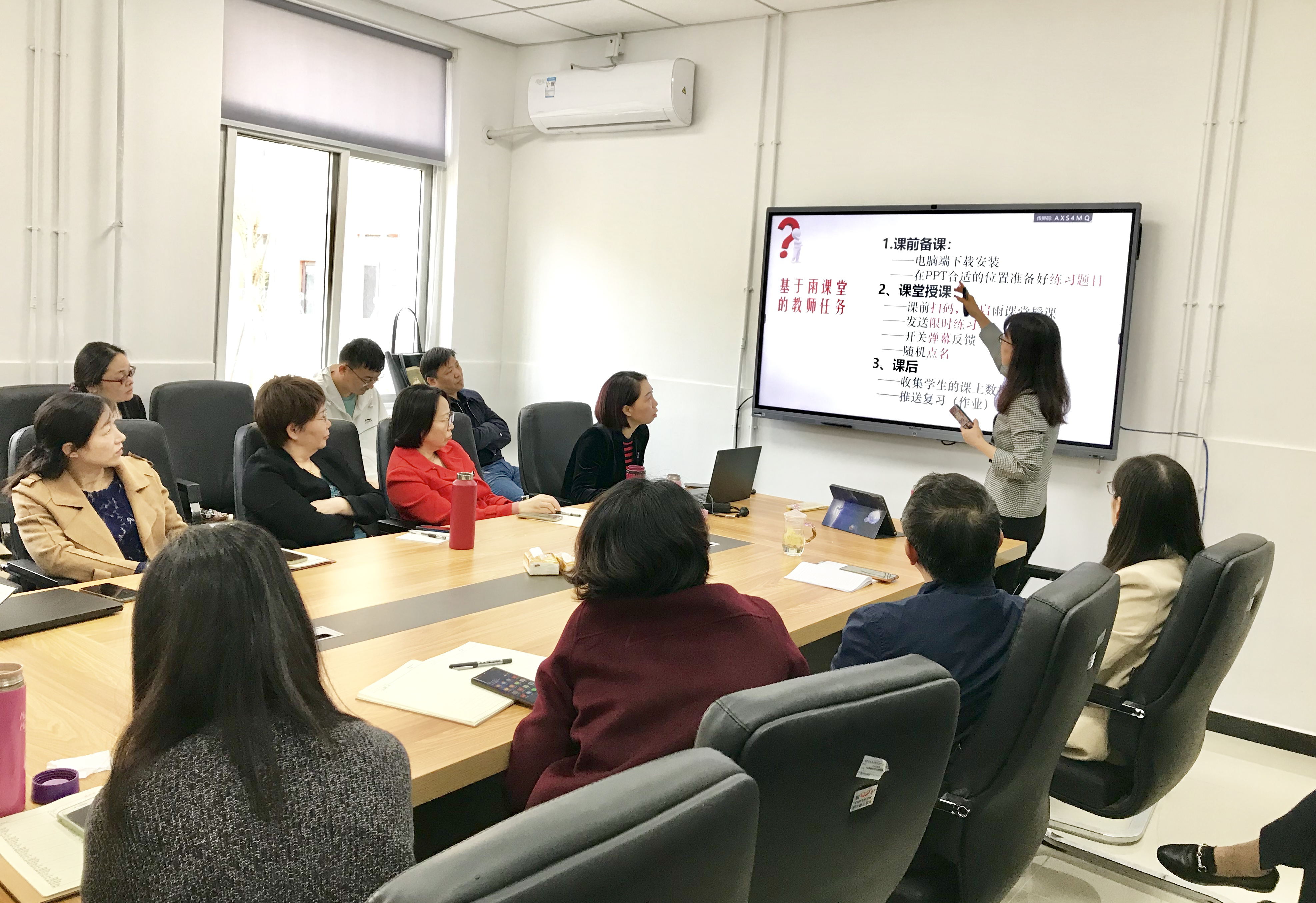 王晓青老师以“大班教学之师生互动利器——走进雨课堂”为题分享了雨课堂的使用方法、学生参与方法和基础使用功能等内容,将先进教学软件与课堂教学相结合,不仅能及时掌握学生的知识点掌握情况,还可以提高课堂的学生参与度,有助于丰富思想政治理论课教学形式。