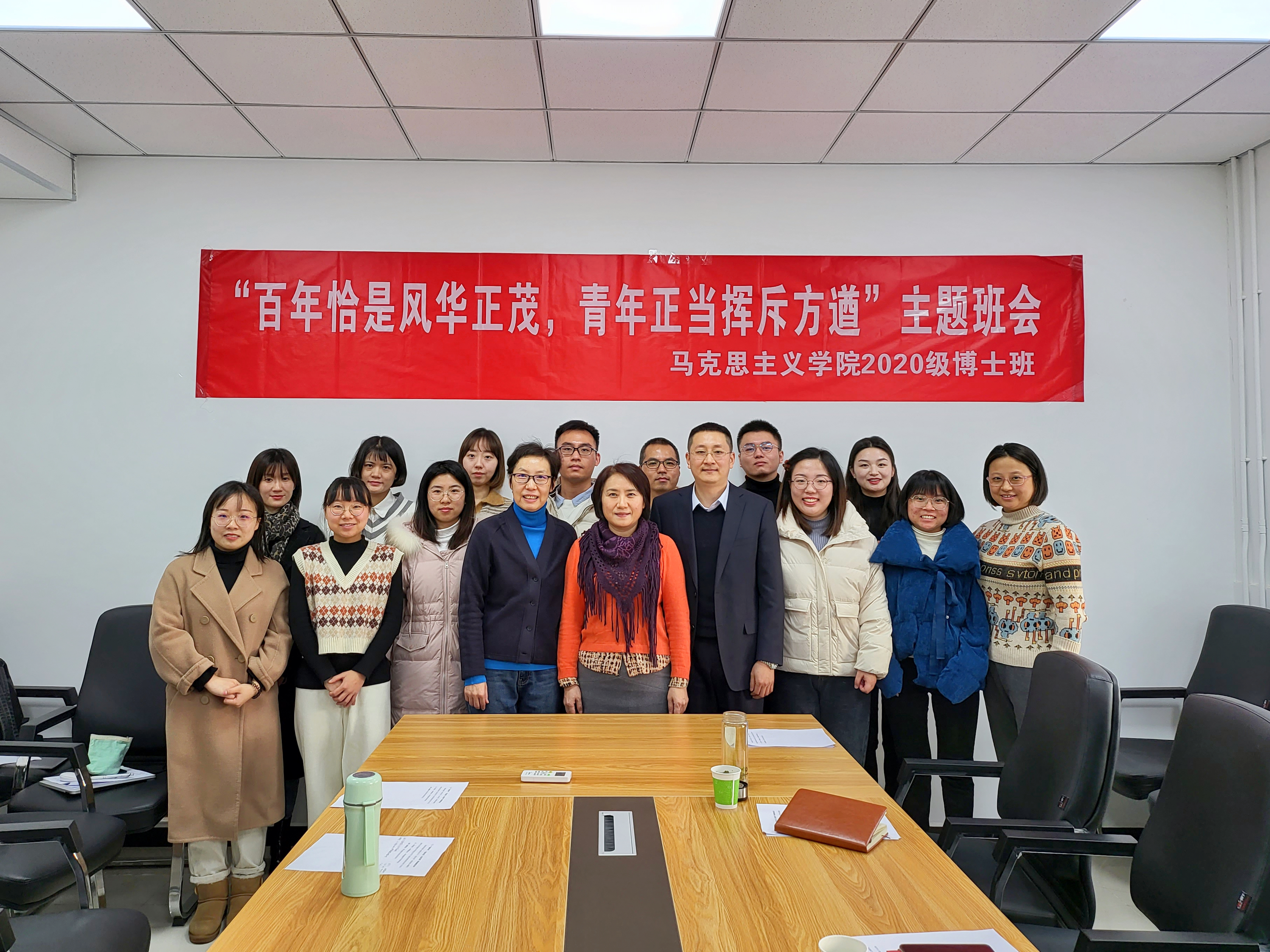 2021年12月14日上午,p站 2020级博士班开展主题为“百年恰是风华正茂,青年正当挥斥方遒”的班会。校党委常委、宣传部部长蓝晓霞出席班会。p站 党委书记孙冬梅、副书记副院长田永静、辅导员刘慧敏、班主任管前程、20博全体同学参加了班会。
