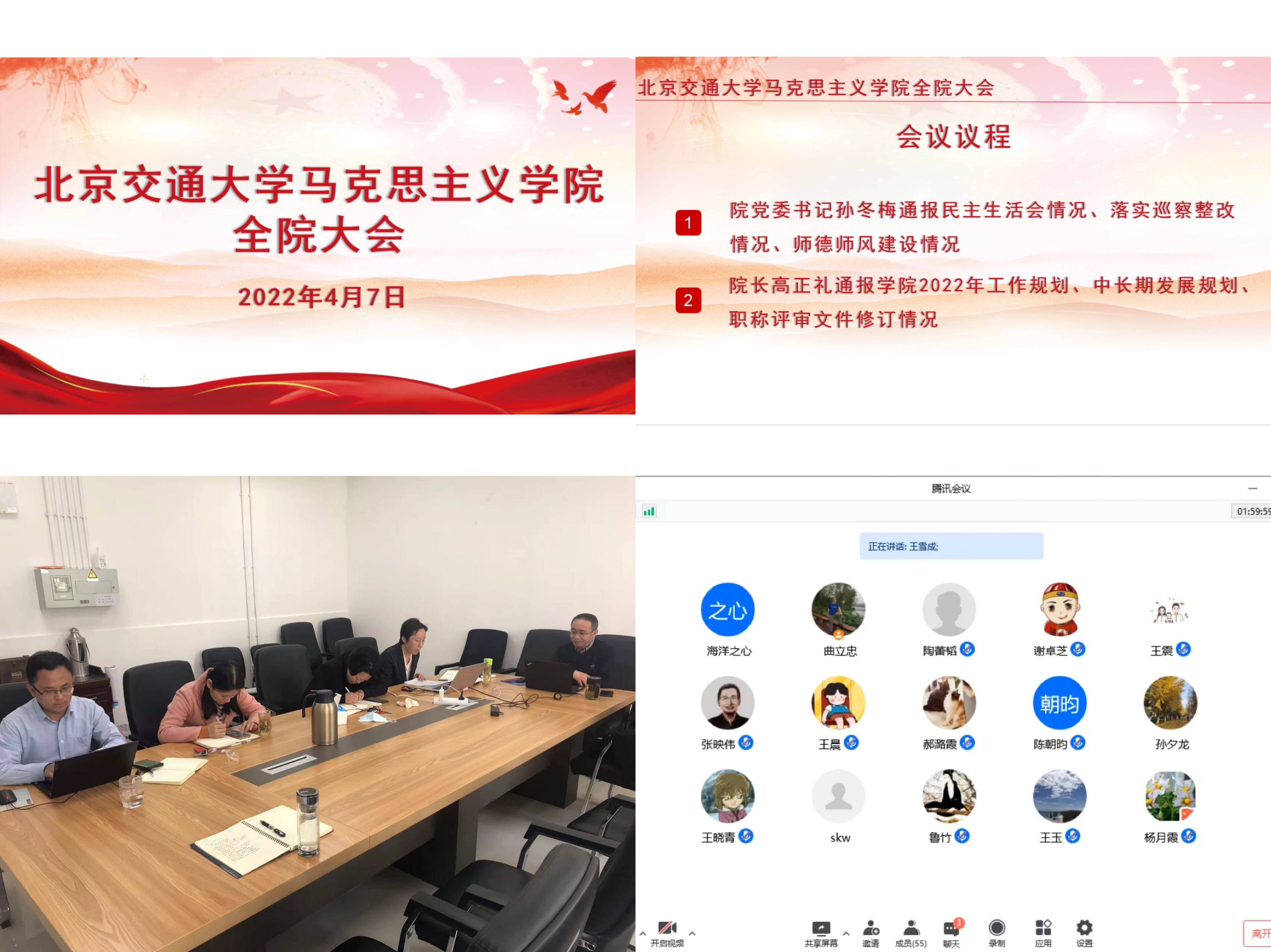 2022年4月7日下午,p站 2022年度第一次教职工大会顺利召开,根据学校疫情防控要求,此次会议采取线上线下相结合的方式。院领导班子全体成员及全院教职工参加会议。学院党委副书记、副院长田永静主持会议。