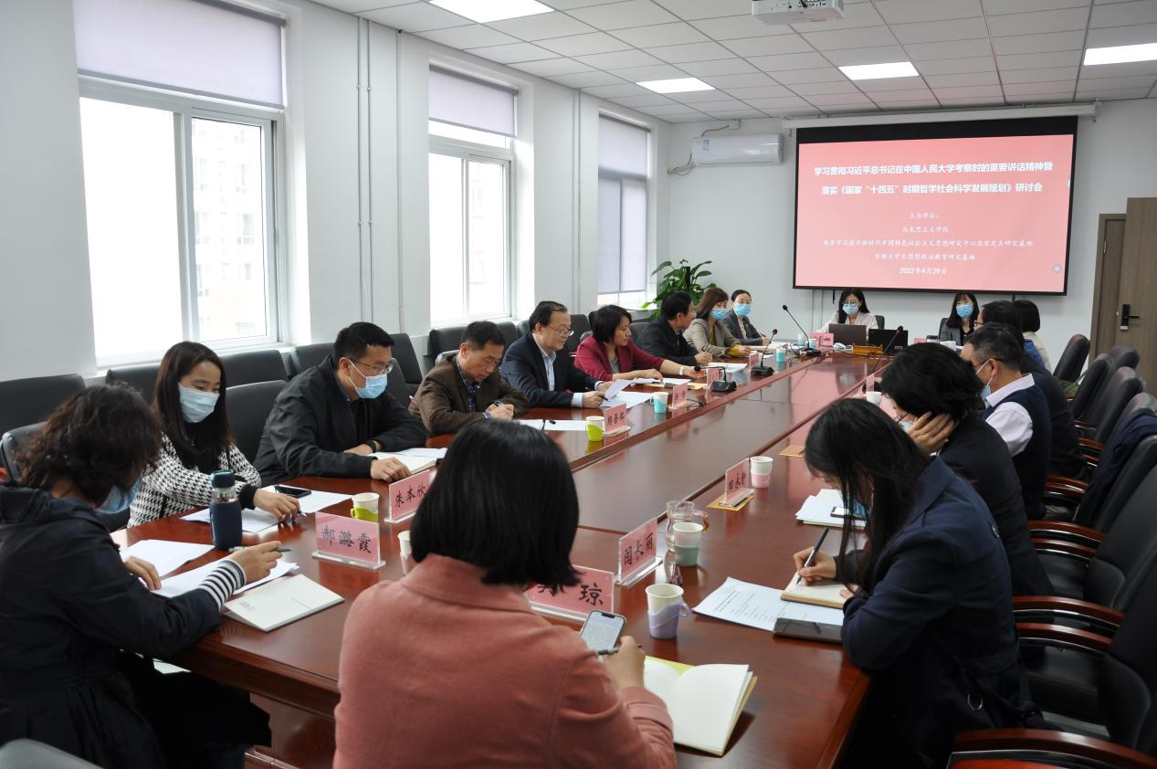 社科处副处长吴静传达了《国家“十四五”时期哲学社会科学发展规划》文件精神,并对加快中国特色哲学社会科学学科体系建设、学术体系建设、话语体系建设等方面进行深刻解读。学生工作处副处长高永峰结合部门实际,介绍了学生工作处贯彻落实习近平总书记重要讲话精神的具体举措。