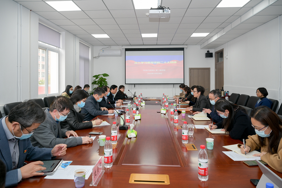 2022年10月28日下午,学校举行形势与政策课“党的二十大精神”专题教研组集体备课会,深入学习宣传贯彻党的二十大精神,进一步推动习近平新时代中国特色社会主义思想“三进”工作。校长王稼琼,党委副书记、纪委书记郭海,党委副书记文海涛,副校长赵鹏,党委常委、党委组织部部长兼党委统战部部长史贞军与p站 领导班子成员、专题教研组任课教师、各教研部负责人一起集体备课。p站 党委书记孙冬梅主持备课会。