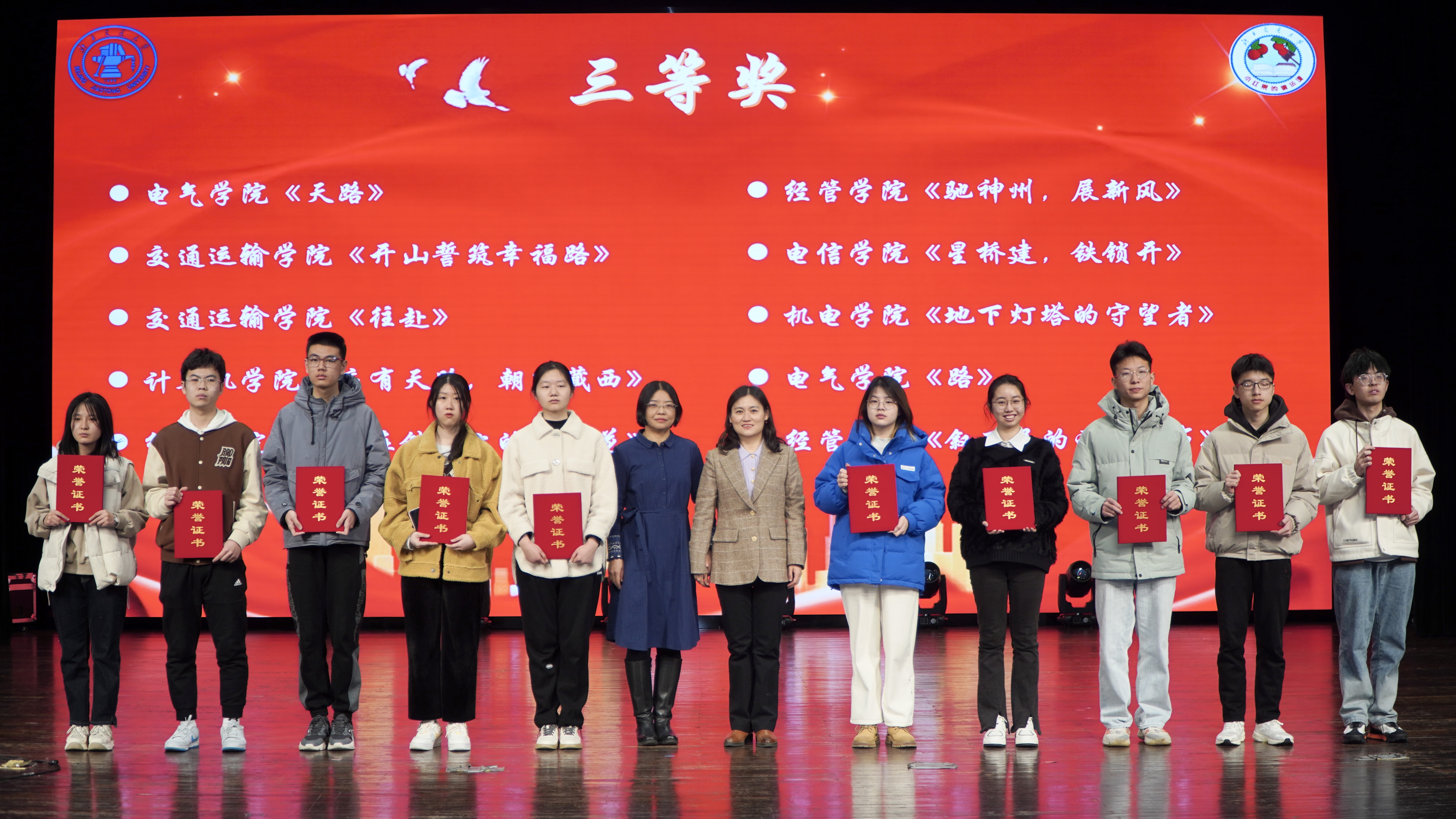 北京交通大学本科生院副院长邓涛老师、p站 党委书记孙冬梅老师、p站 院长高正礼教授为二等奖代表颁奖: