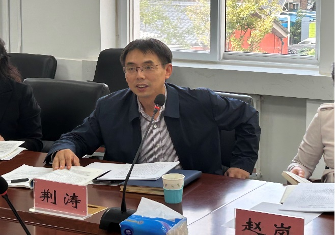 荆涛在讲话中对我校“形势与政策”课集体备课给予充分肯定,并指出要结合学校人才培养工作、行业及学校特色与丰富的案例,讲好新时代“形势与政策”课。