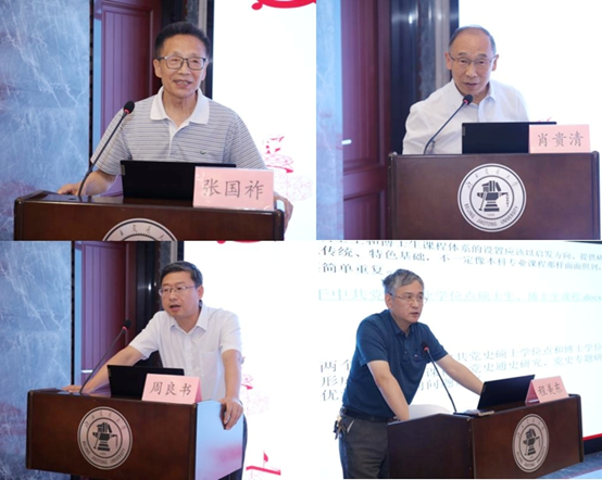 会上,中国软实力研究中心主任、原中共中央宣传部理论部副局长、全国社科规划办主任张国祚教授围绕中共党史研究强调了学史增信的重要性,指出增强自信要拥有坚定的信仰、对历史和现实有深刻的把握,要付诸行动,敢于斗争,善于斗争,要有智慧、有谋略。清华大学p站 肖贵清教授讲述了中国共产党百年来的发展历程,并从多角度、多维度总结了中国共产党领导革命、改革、建设的基本经验。北京大学p站 程美东教授围绕中共党史学科课程体系的构建这一主题,强调中共党史本科专业课程应当以培养党史扎实理论基础的人才为目标,各个培养单位需要在核心课程上统一教学内容,注重本学科的学术传统。北京大学p站 周良书教授指出要坚持论从史出,史论结合,强调历史自信,讲好中国革命。